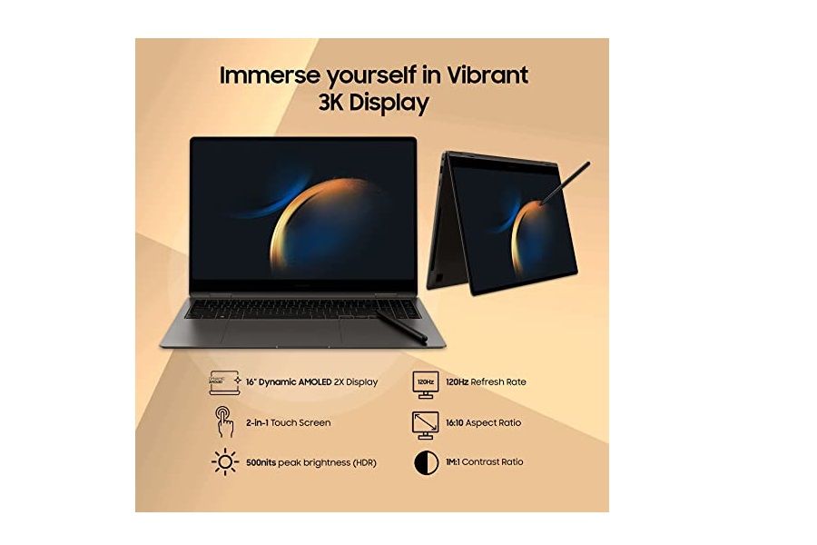 Intel 13th Gen i5 EvoTM 40.62cm(16") Touchscreen 2-in-1 3K Display, 120Hz, Thin & Light Laptop(16 GB/512 GB SSD/Windows 11/MS Office/S-Pen/Graphite/1.6Kg), NP960QFG-KA2IN
